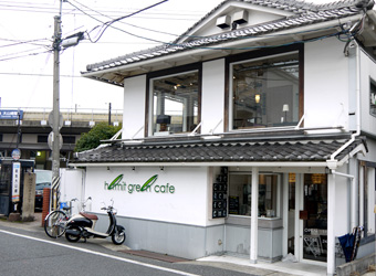 天下分け目の戦で有名な天王山(てんのうざん)のふもとに位置します京都大山崎のハーミットグリーンカフェ様にて、ドイツ・ソラルクス社製 グラスハウス®をご採用いただきました。こちらのお店は阪急電鉄の大山崎駅のすぐ隣です。またJR東海道本線の山崎駅からは約250mの距離です。こちらのカフェは和風の家を改築されたカフェです。