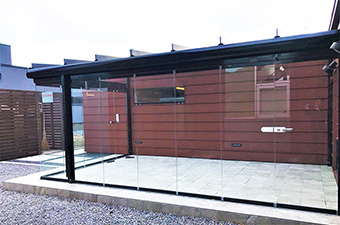 SL22はガラスパネルにフレーム枠がない為、視界が大きく広がり、一枚窓のように内部とお庭が繋がります。