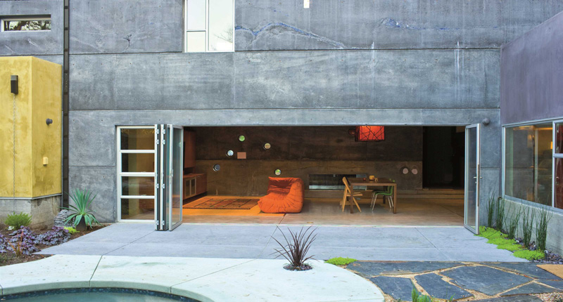 スライド式ドアなのでコンパクトに開閉が可能で、ガラスパネルは端部に集約される為、開口部が大きく広がります。