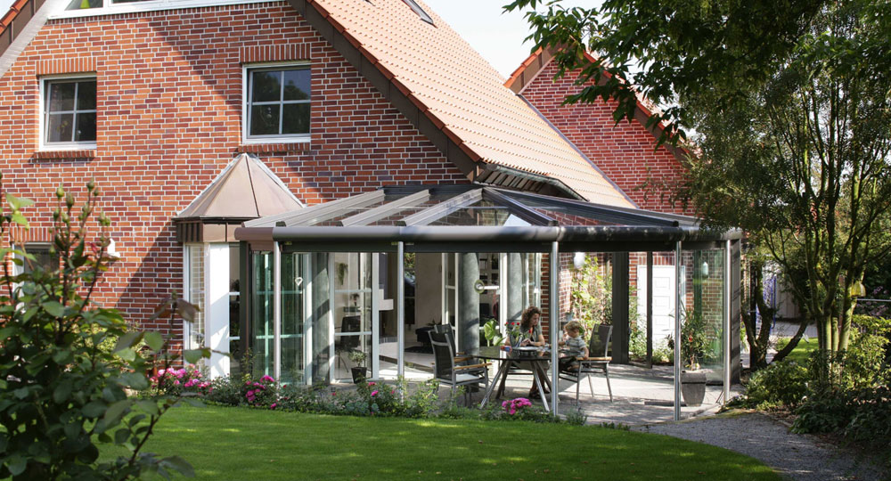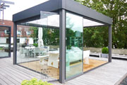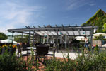 グラスハウスの透明感と解放感はそのままに、屋根の一部に木製の部品を採用することでより自然と調和した「オーラ」の施工事例です。