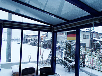 「アトリウム」とは、ガラスなどの光を通す材質の屋根で覆われた大規模な空間のことを意味しており、そんな光あふれる「アトリウム」を実現し、上質なひとときをお過ごしいただけるガーデンルームです。積雪への対応も万全です。