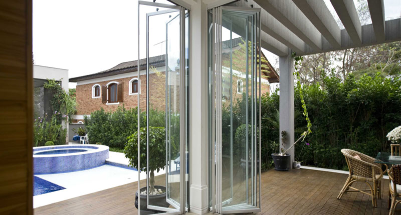 (ガラスパネル「SL45」の場合、パネルは連結した折り戸式(フォールディング)となっており、開閉も簡単&自由自在で、気密性も抜群です。)